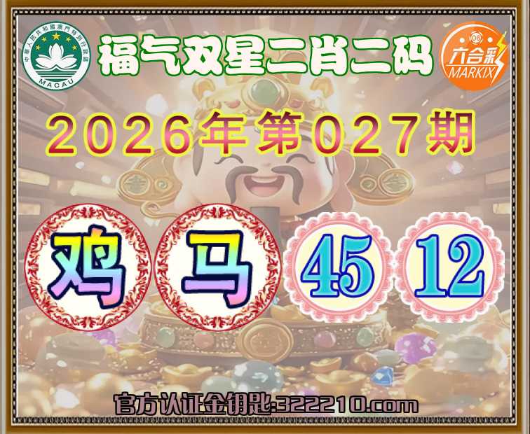 027期:【福气双星】 ✌️二肖二码✌️【马】【45.12】开:鸡45